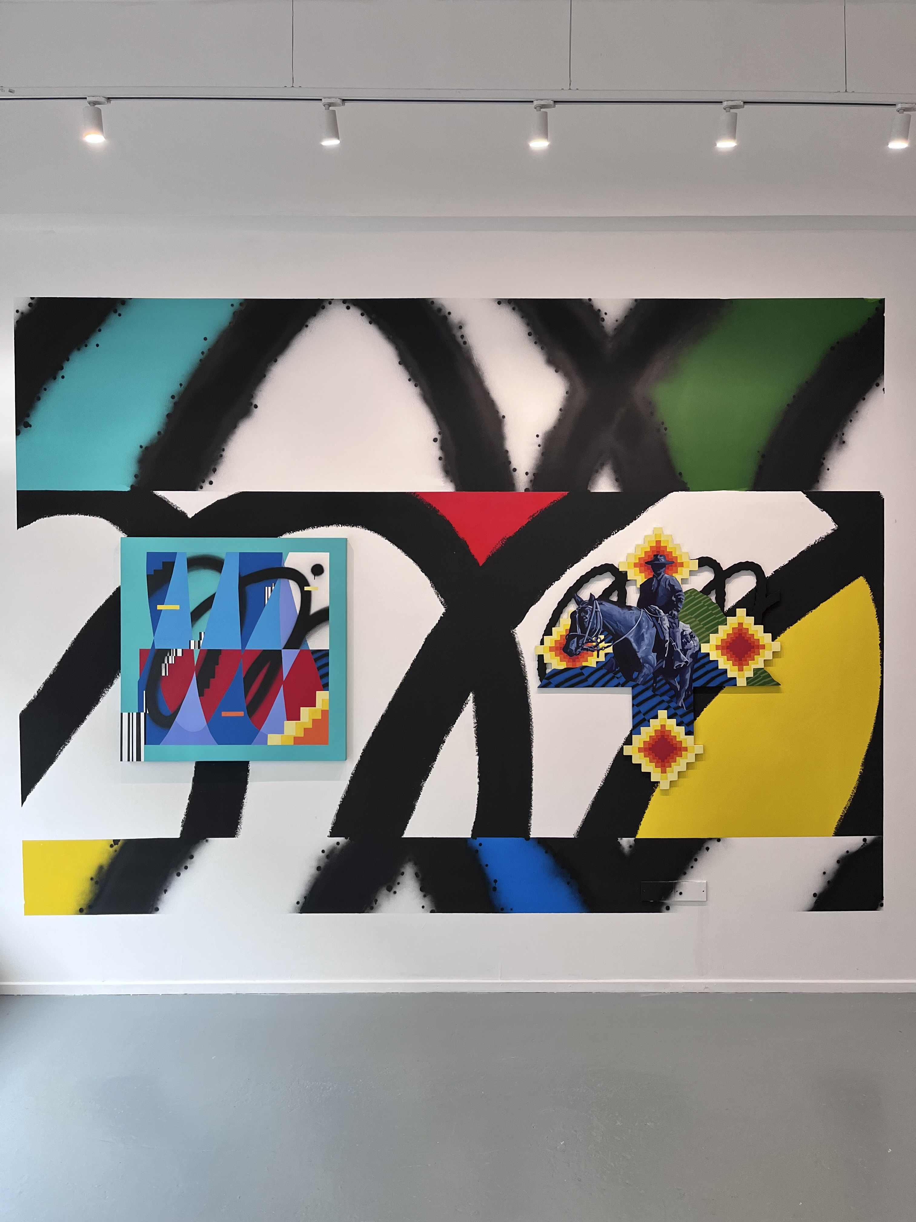 'Solo mission' - Spray, Acrylic and oil paint on cut birch panel 121 x 152cm